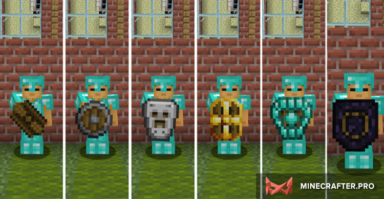 Этот мод также добавляет те же типы щитов в сортах башенных щитов, но с ними вы можете применять к ним баннеры для дополнительной настройки.